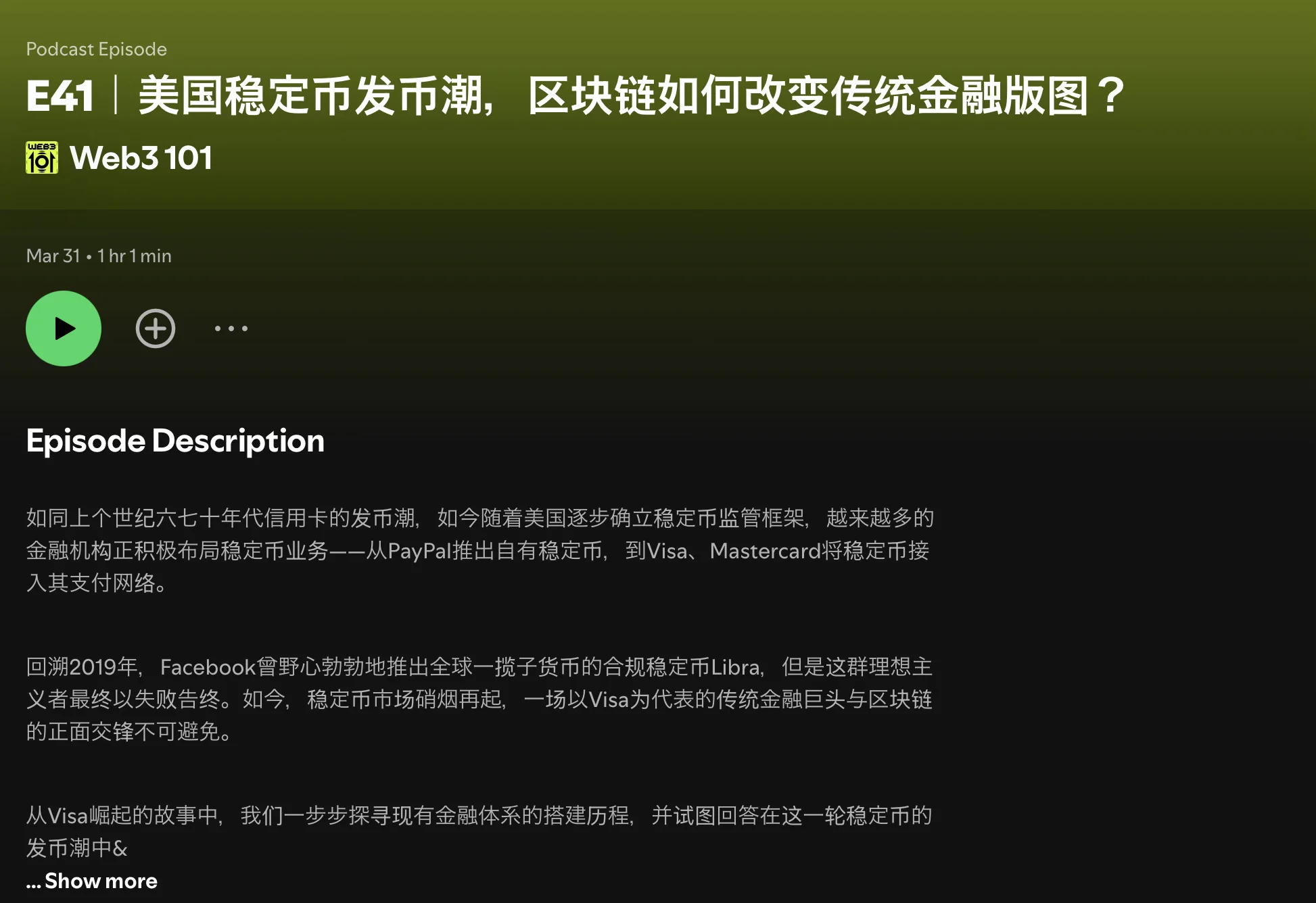 Web3 101 is growing into one of the best crypto podcasts. If Wu Blockchain were the CNN for crypto - it recaps breaking events of the moment; Web3 101 would be the Atlantic or the New Yorker of crypto. The hosts are not only knowledgeable but also know how to ask the right questions in the right way (a major weakness for many podcast hosts).