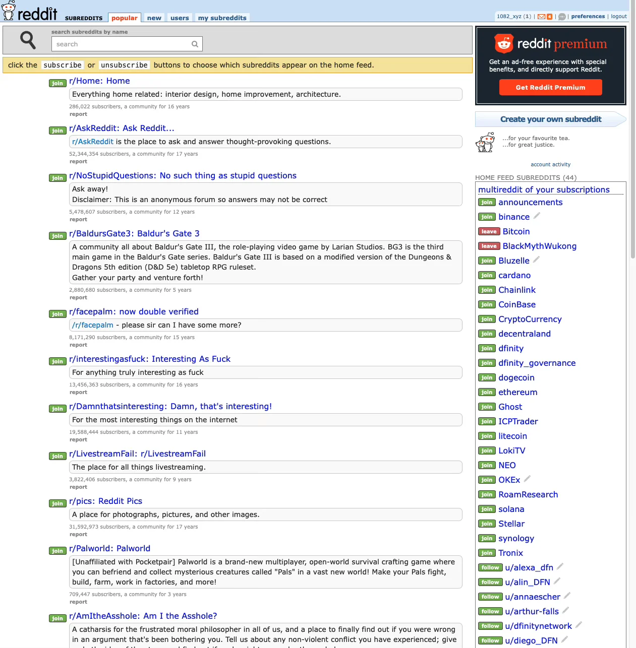 I realized I should just unsubscribe from all the current subreddits to start with a clean slate since I’ve moved on to something quite different from a few years ago. Do I have to go into every one of the 50+ communities and click the “leave” button one by one? That seems very time-consuming.